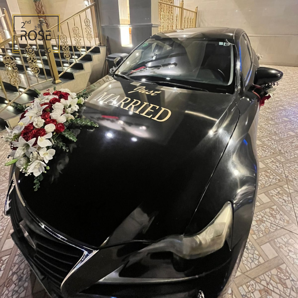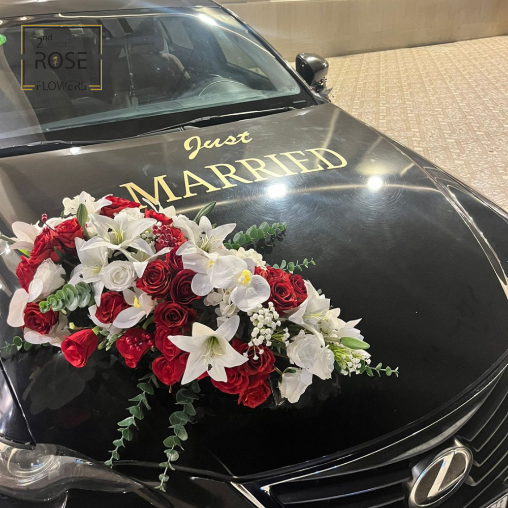 * يمكنكم طلب أي تجهيز وتغيير نوع ولون الورد اللذي تريدون منا استخدامه في سيارة الزفاف .